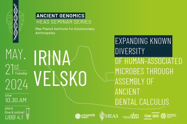 As part of the HEAS Seminar Series in Ancient Genomics Irina Velsko from Max Planck Institute for Evolutionary Anthropology will give a talk on ‚Expanding known diversity of human-associated microbes through assembly of ancient dental calculus‘ on the 21st May 2024.