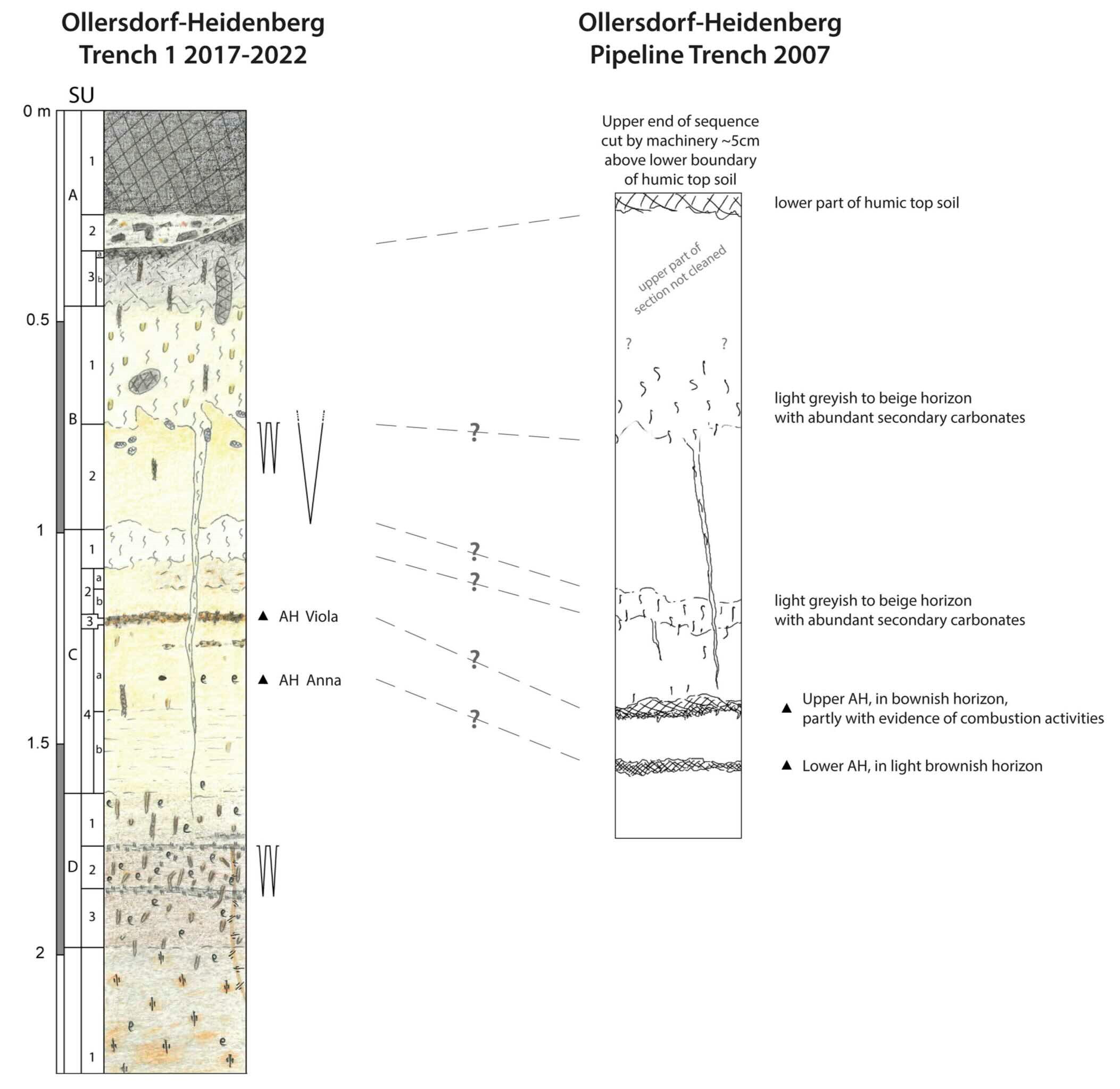The aim of this paper is to introduce Ollersdorf-Heidenberg, a loess open-air site. The site is located ~ 26 km northeast of Vienna close to the Morava River valley and preserves several Upper Palaeolithic archaeological horizons. The site has been known since a pipeline construction in 1998. Here, we report the first results of new research at the site including new excavations in two trenches.